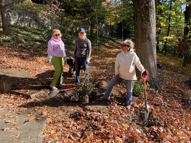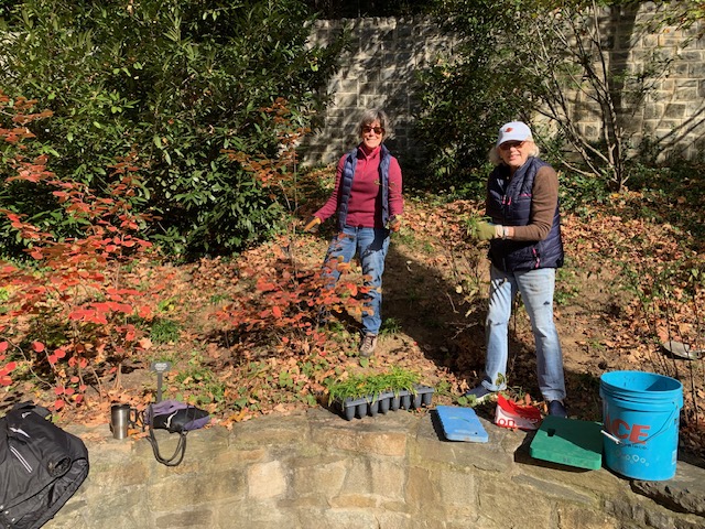 EGC Volunteers spent a fun and productive morning at Tregaron chiseling through the dry and compacted soil to plant in the garden area that EGC maintains. Volunteers enjoyed the opportunity to work together and enjoy the beauty of Tregaron on a gorgeous fall day. Thanks to all who were able to help: Susie Taylor, Colet Mitchell, Catherine Farrell, Ann Reid, Frances Usher and Sarah Vilms.